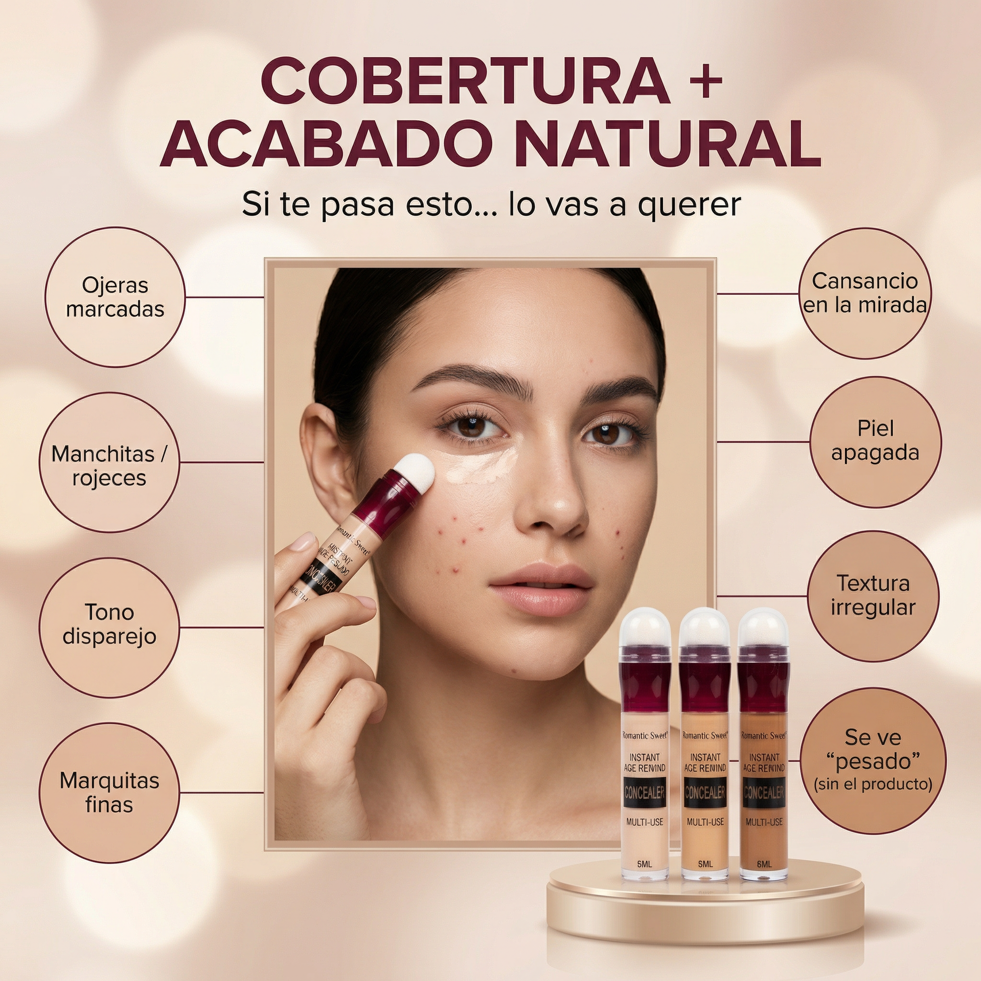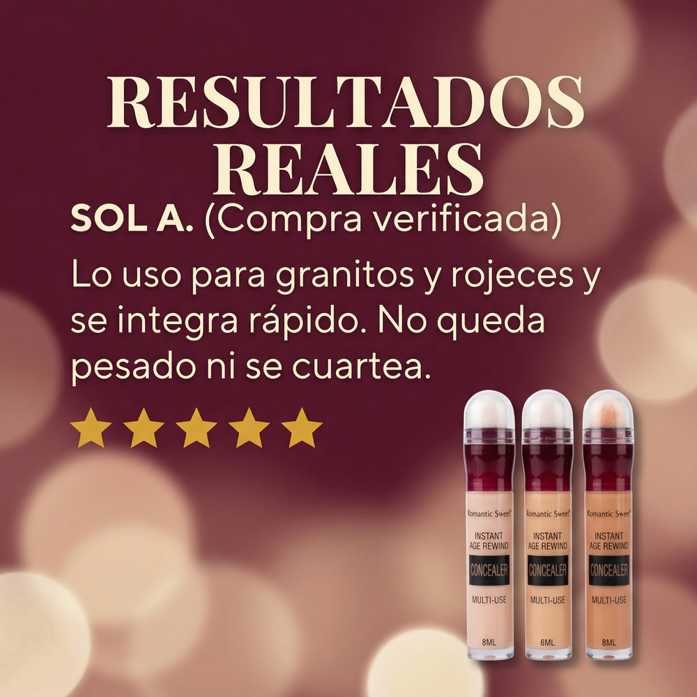 “Lo uso todos los días para las ojeras y la verdad me sorprendió. Se aplica fácil con la esponjita, no se nota pesado y el tono se adapta súper bien a mi piel. Me deja la cara más prolija al instante.”