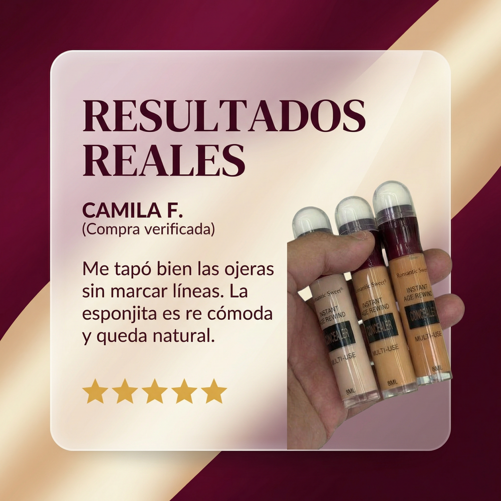 “Me tapó bien las ojeras sin marcar líneas. La esponjita es re cómoda y queda natural.”